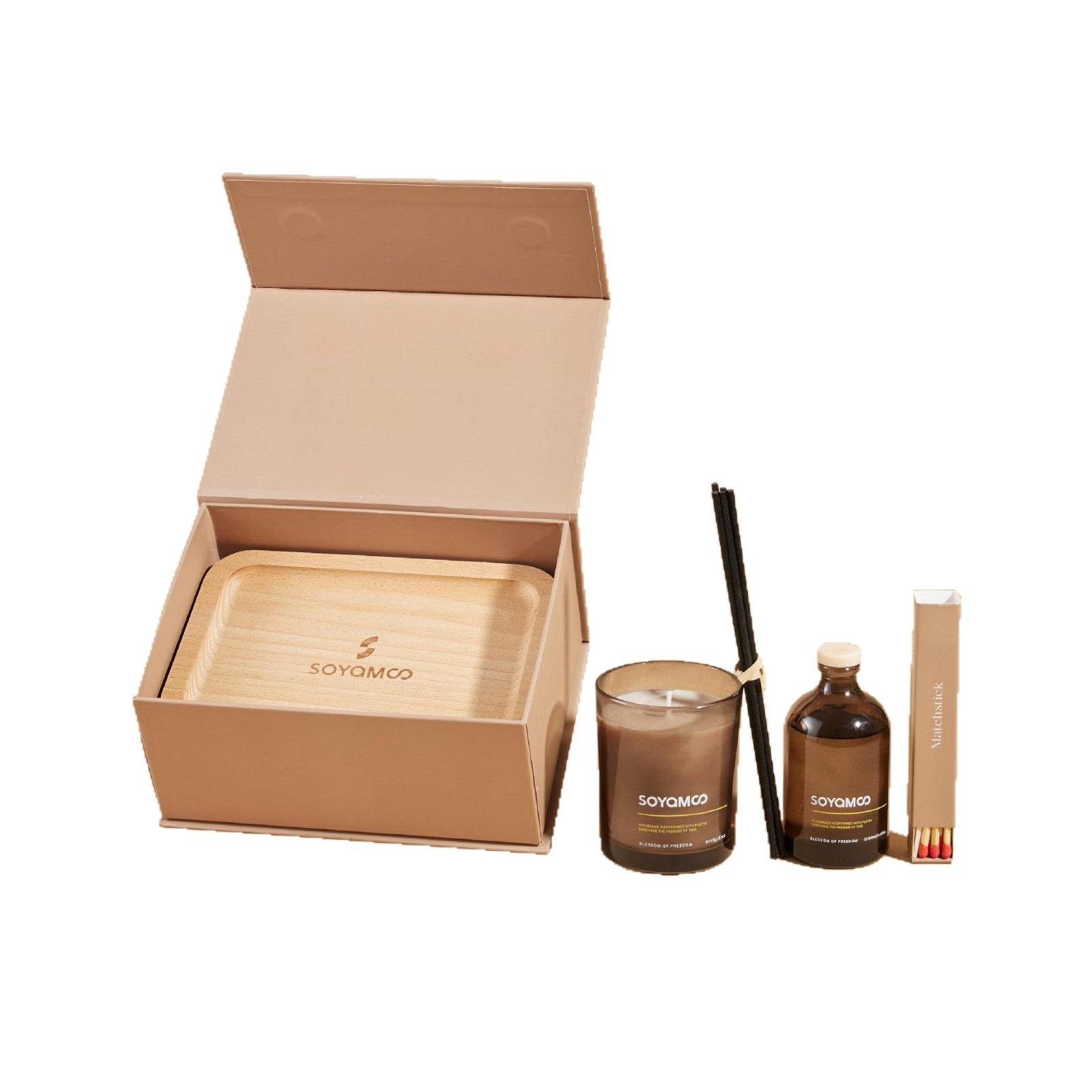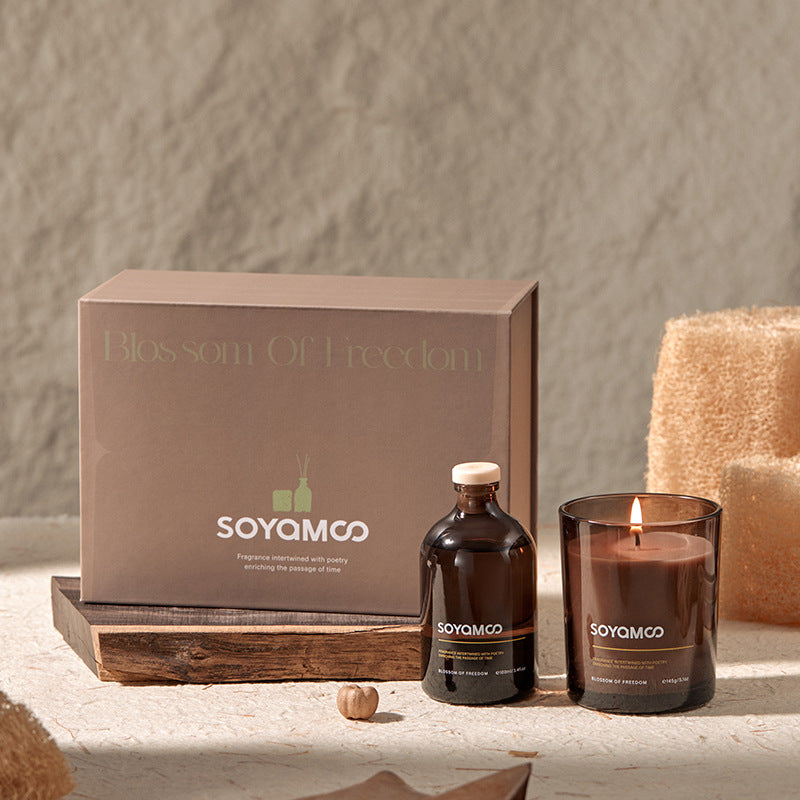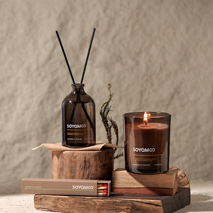 طقم عطور منزلي فاخر يحتوي على شمعة عطرية + عطر أعواد + أعواد بخور، مصمم ليضيف إحساس بالهدوء والراحة لأي مكان.