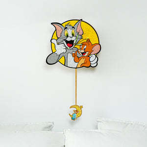 حوّل جدار غرفتك إلى قطعة فنية مرِحة مع ساعة الحائط الخشبية بتصميم توم وجيري المميز.
