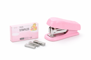 إذا تريد قطعة عملية وحلوة بنفس الوقت، هذه الدباسة الميني باللون الوردي خيار مثالي للمكتب أو الدراسة. حجمها صغير وسهل الحمل، لكن أدائها قوي ويثبت الأوراق بثبات بدون جهد.