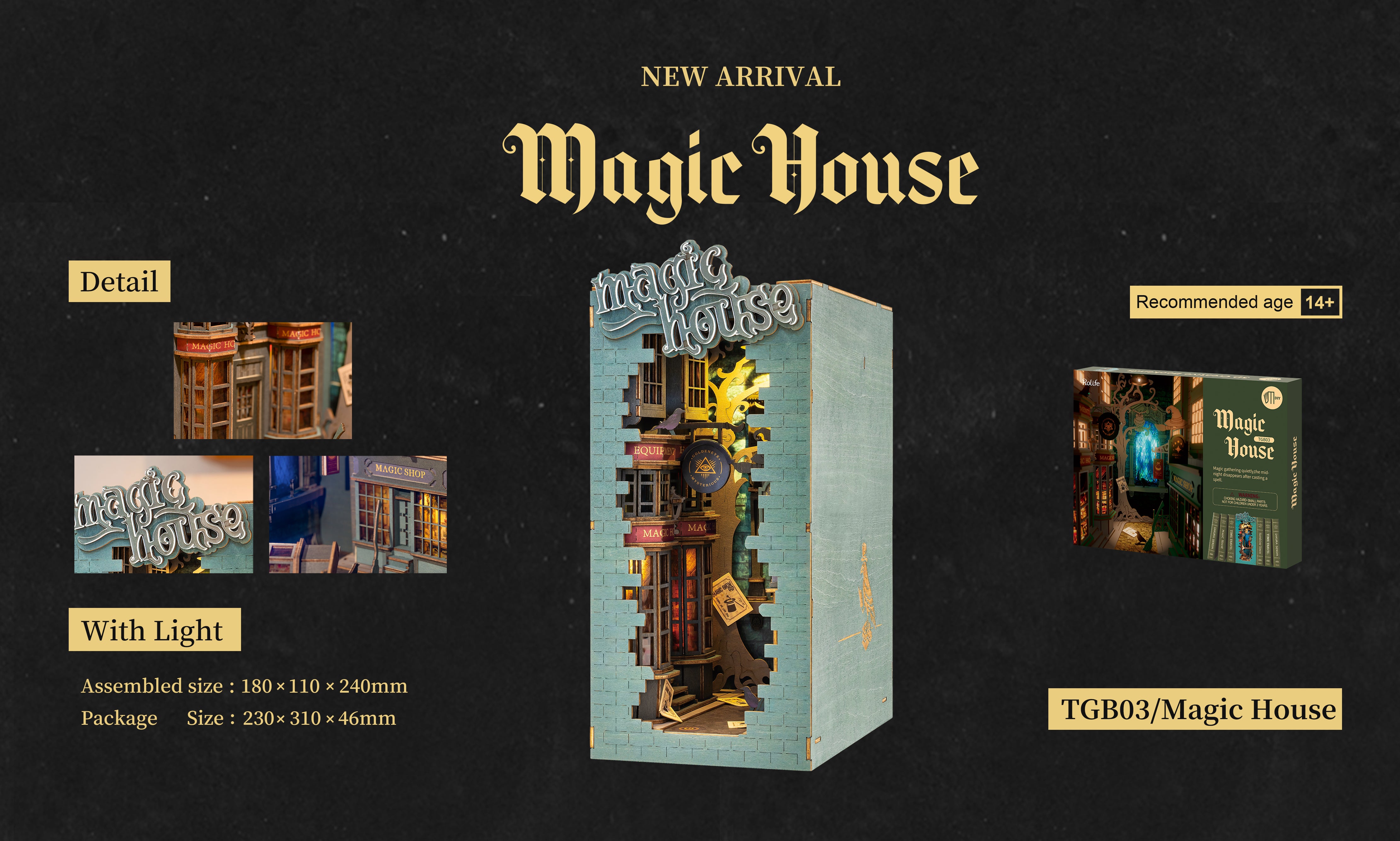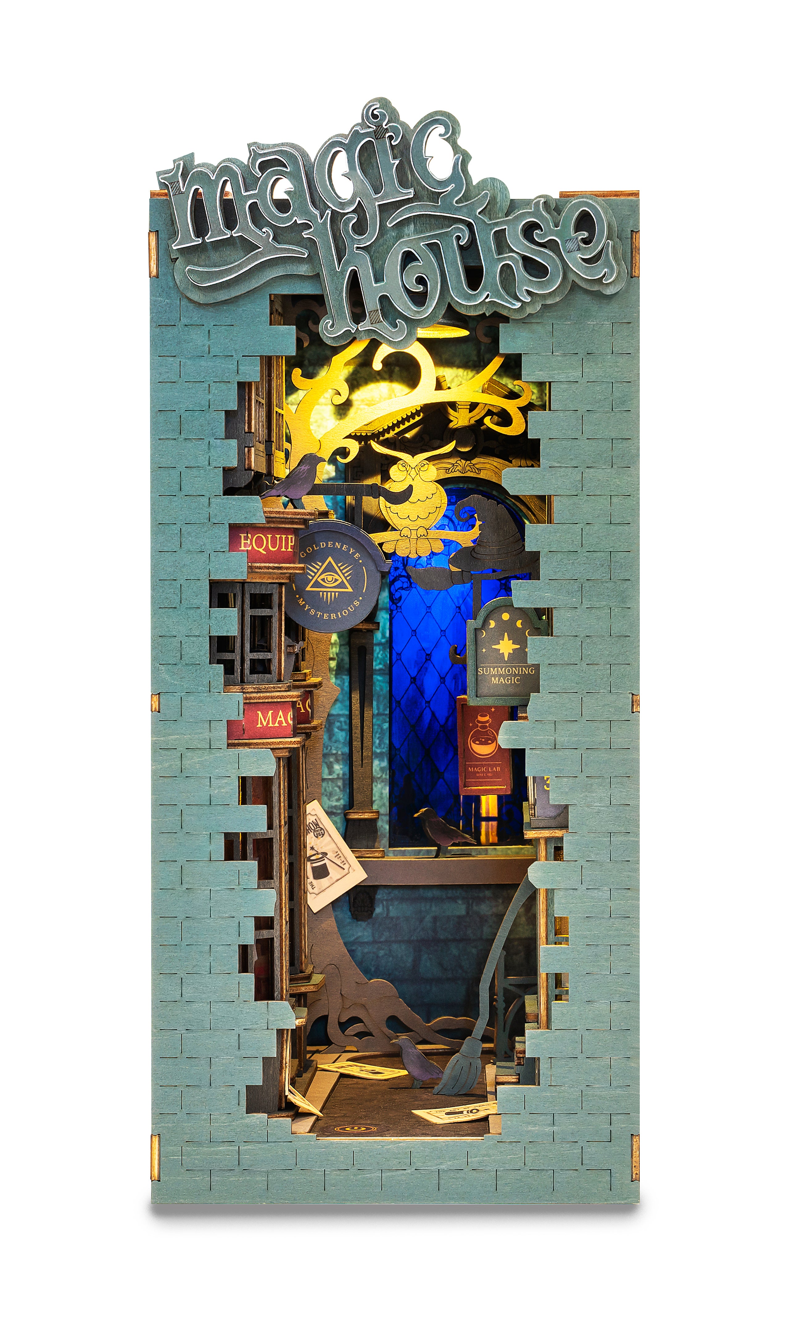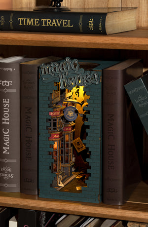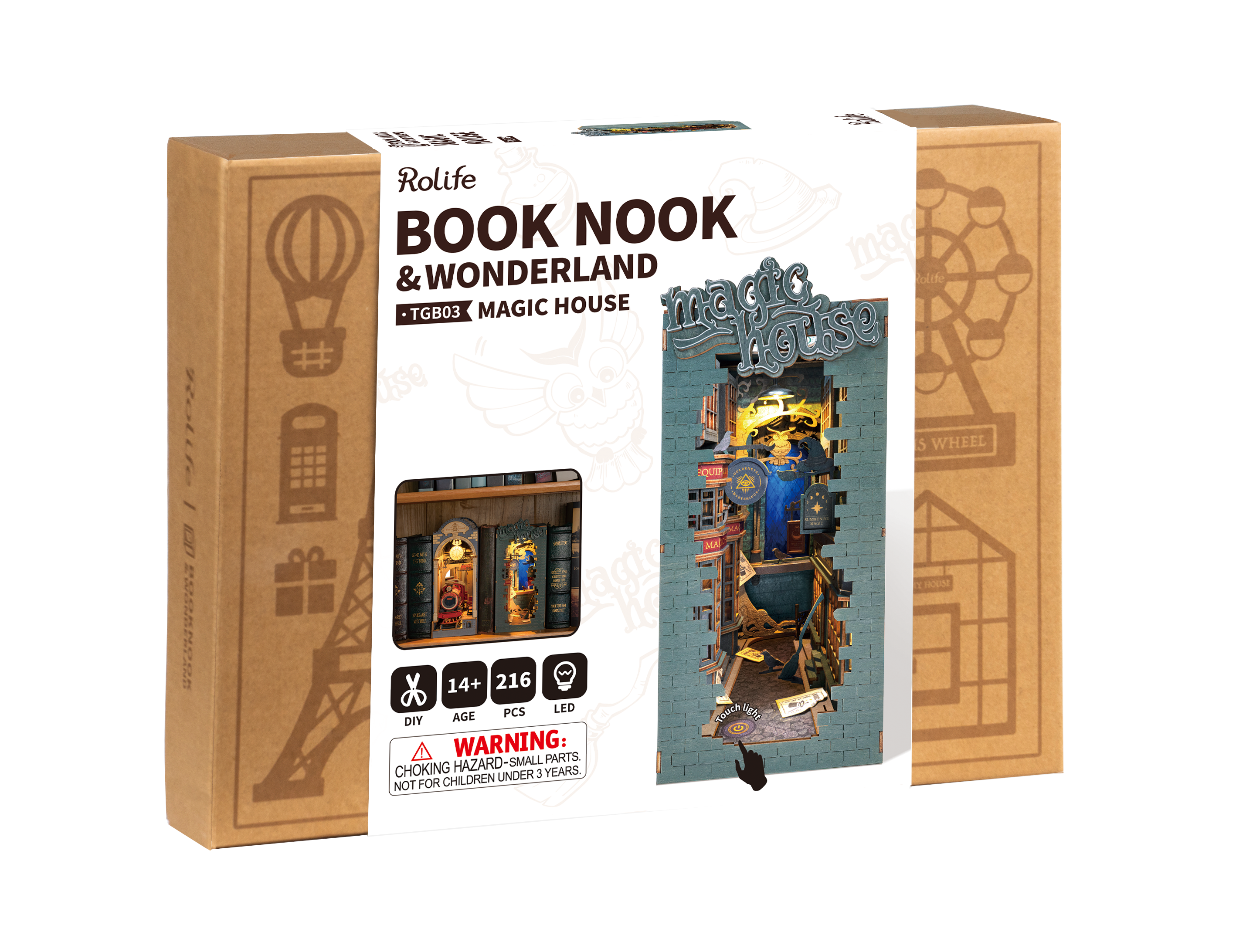 مجسم بيت الكتب السحري (Magic House) من سلسلة Book Nook & Wonderland من Rolife هو قطعة ديكور فنية تُوضع بين الكتب لتخلق عالماً مصغراً مليئاً بالغموض والسحر.