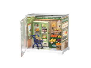 المحتويات: فواكه مصغّرة، رفوف، عربة تسوّق، صندوق مشتريات، هيكل شفاف للحماية