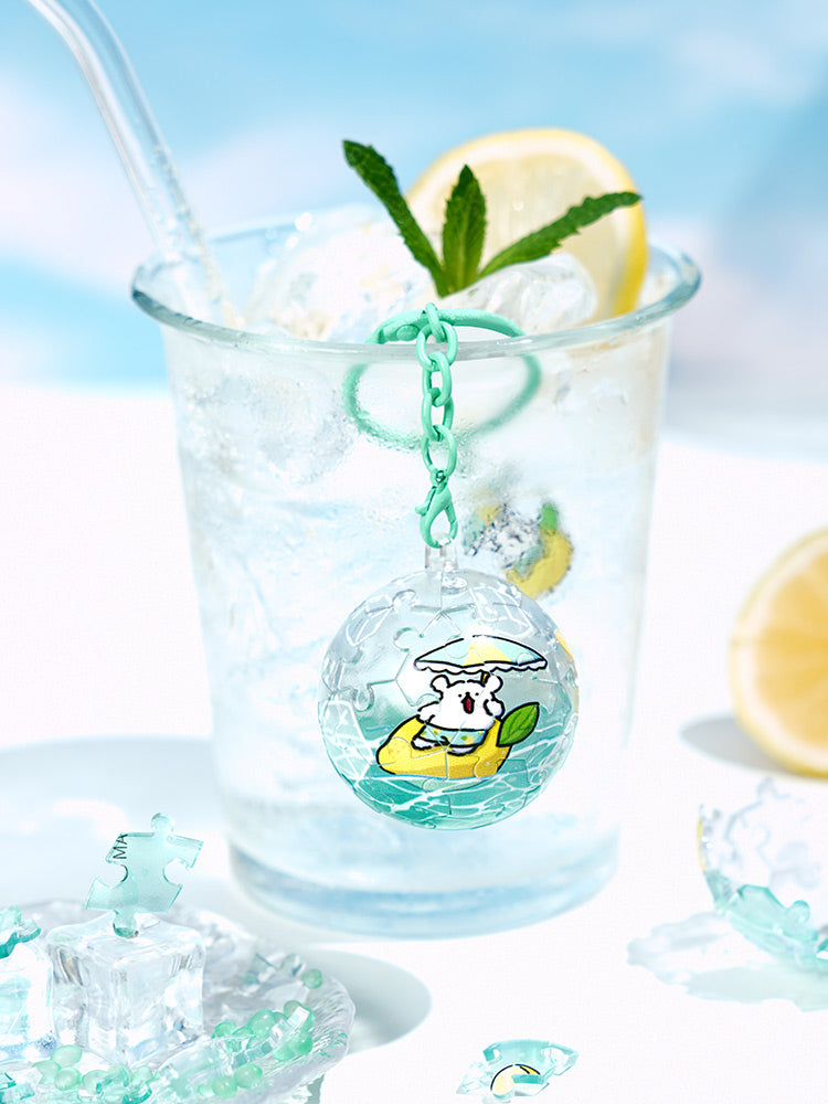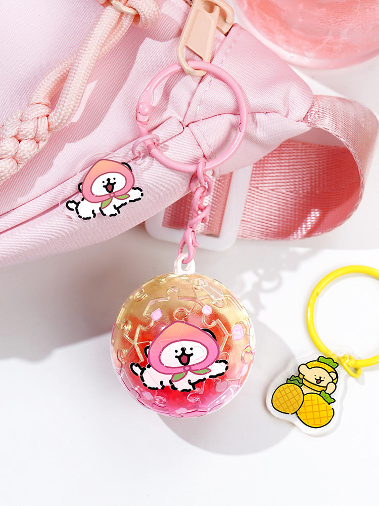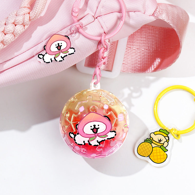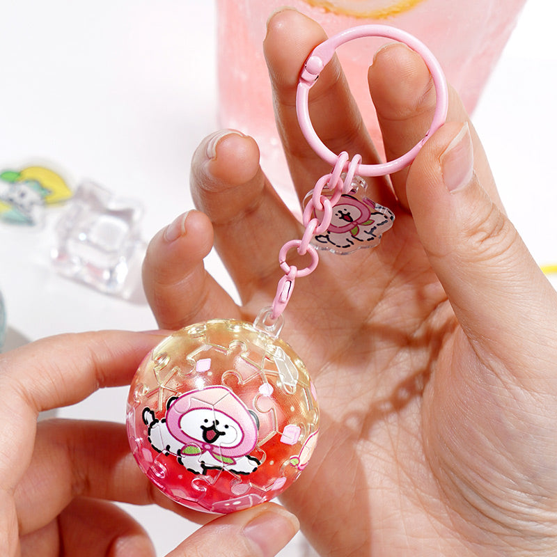 كرة بازل مائية شفافة بتصميم كيوت من شخصية Maltese، تحتوي على قطع بازل صغيرة داخل كرة ممتلئة بتفاصيل لامعة تعطي إحساس لعب وديكور بنفس الوقت. تأتي مع سلسلة لتعليقها على الشنطة أو المفاتيح، منتج ممتع ومميز لعشّاق الأشياء الكيوت والهدايا الخفيفة.