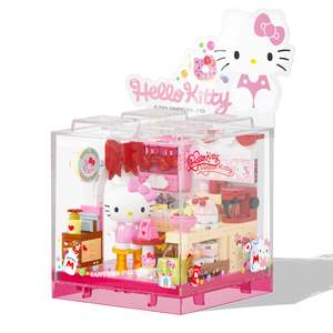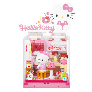 مجموعة مكعبات كيوت بتصميم متجر حلويات هيلو كيتي، مخصصة لمحبي الشخصيات الكرتونية والتجميع.