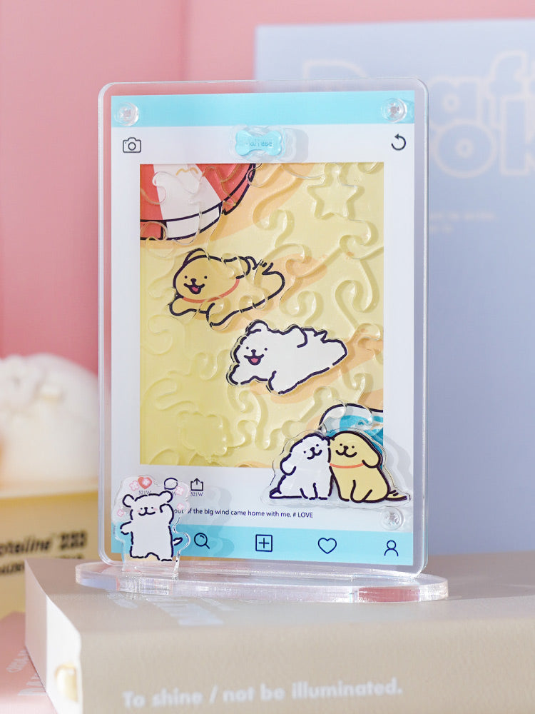 حوّل مكتبك أو غرفتك إلى مساحة كيوت مع إطار أكريليك فريد بتصميم منشور سوشيال ميديا يحتوي على بازل لطيف لشخصيات كلاب مرحة. قطعة ديكور ممتعة تجمع بين اللعب والزينة، مثالية للهدايا ولمحبي الأشياء الكيوت والديكور العصري. تصميم شفاف أنيق مع قاعدة ثابتة، يضيف لمسة دافئة لأي مكان.