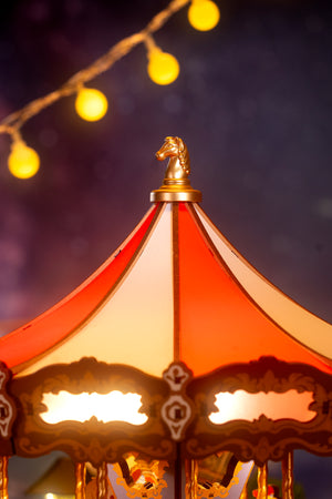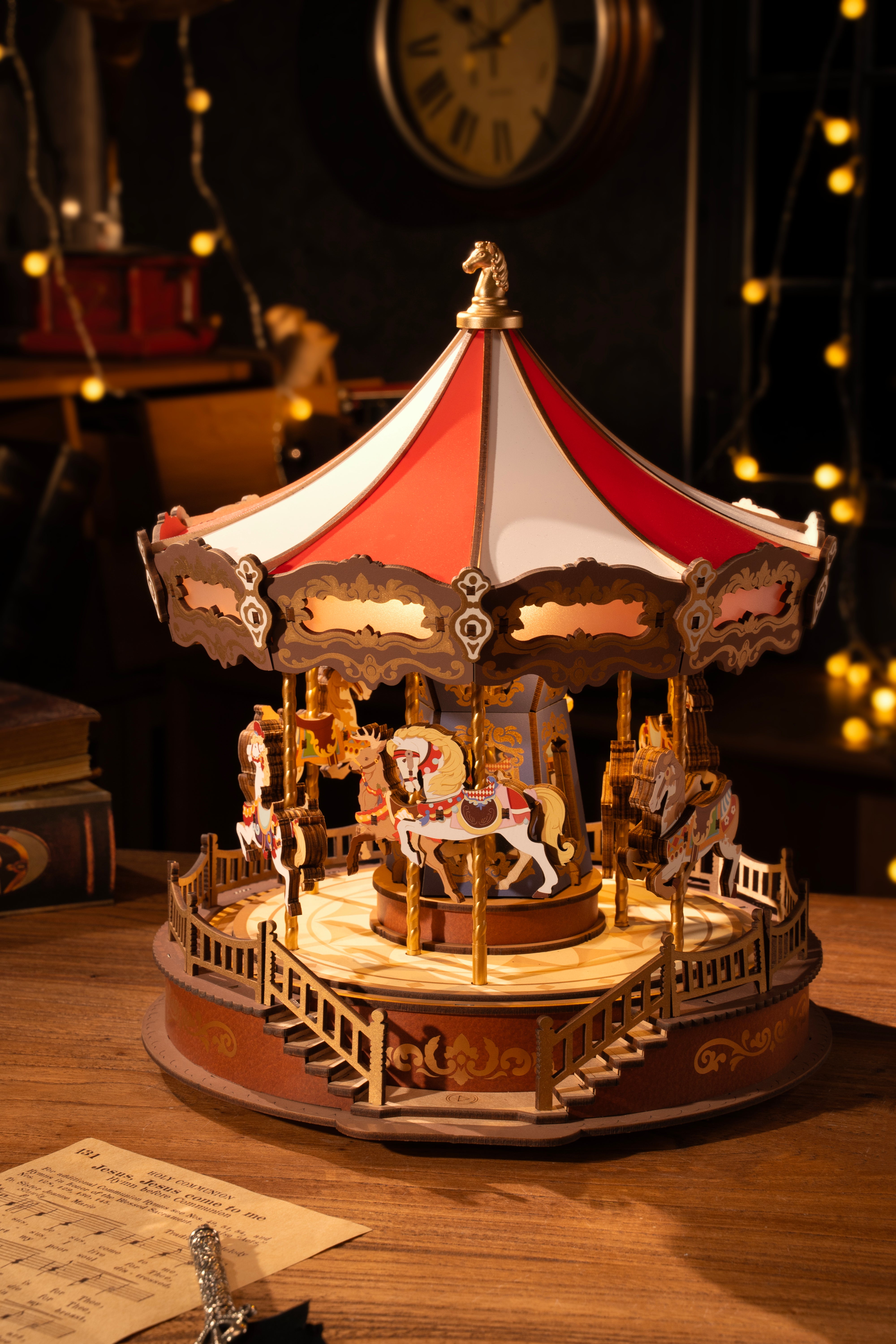 دوّامة موسيقية كلاسيكية بتصميم فاخر مستوحى من ألعاب الملاهي القديمة، تجمع بين الحركة الدوّارة والموسيقى الهادئة لتمنحك قطعة ديكور ساحرة تبعث على الحنين والدفء.