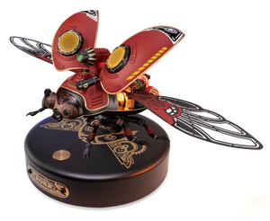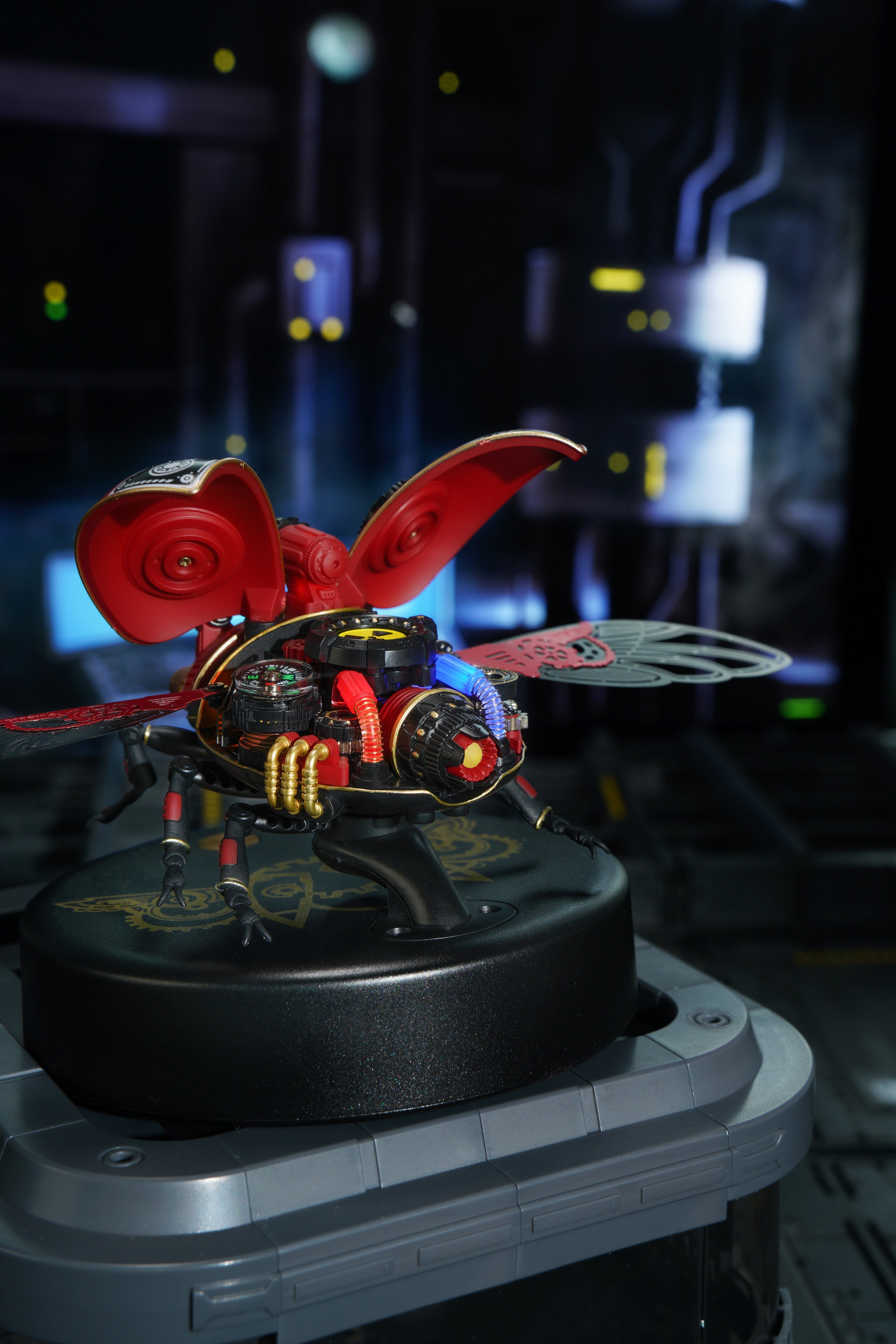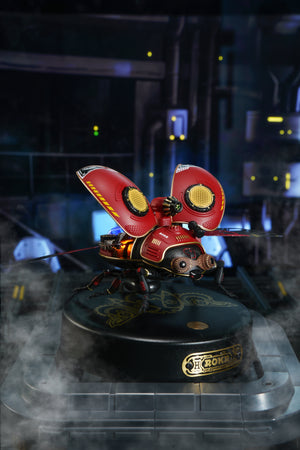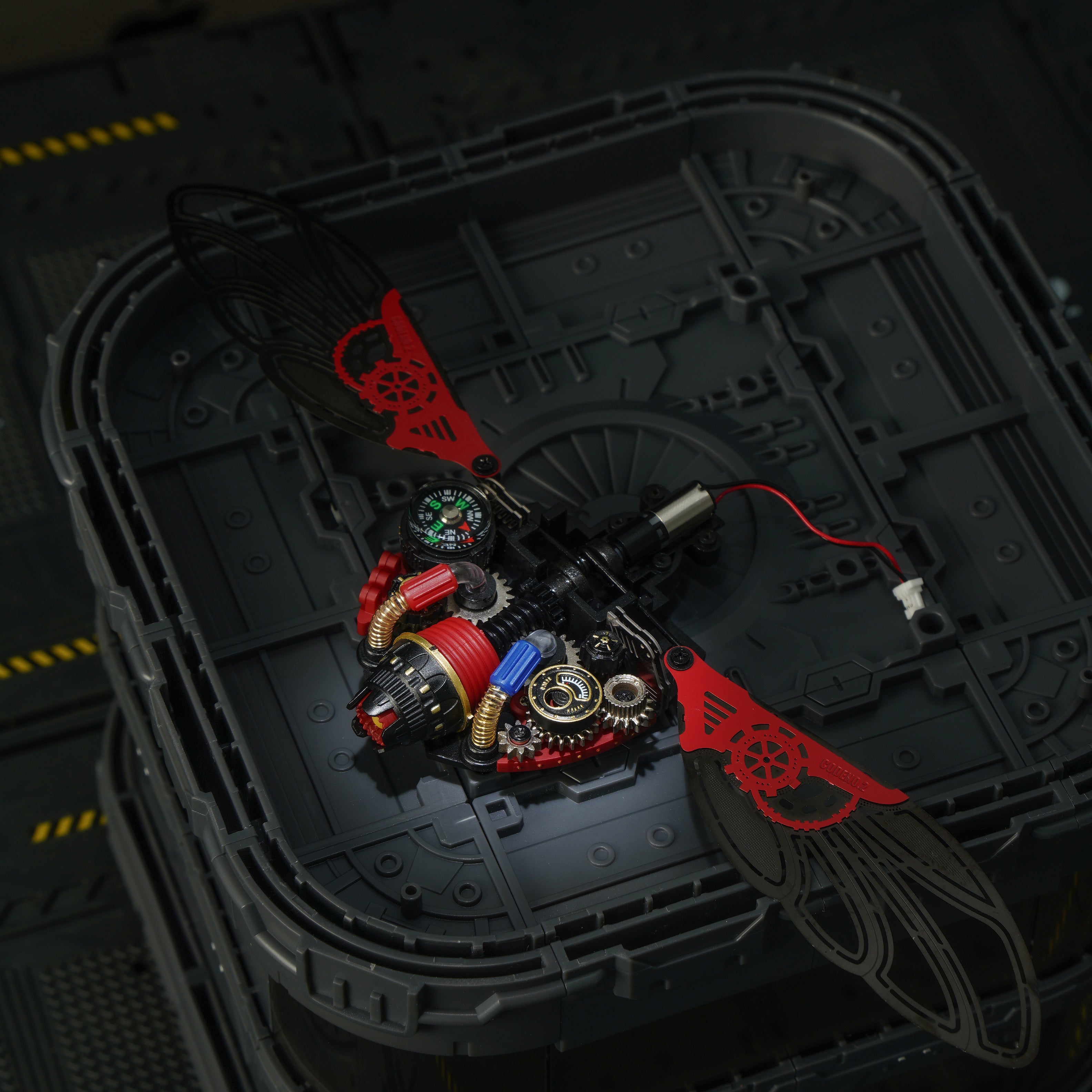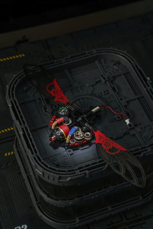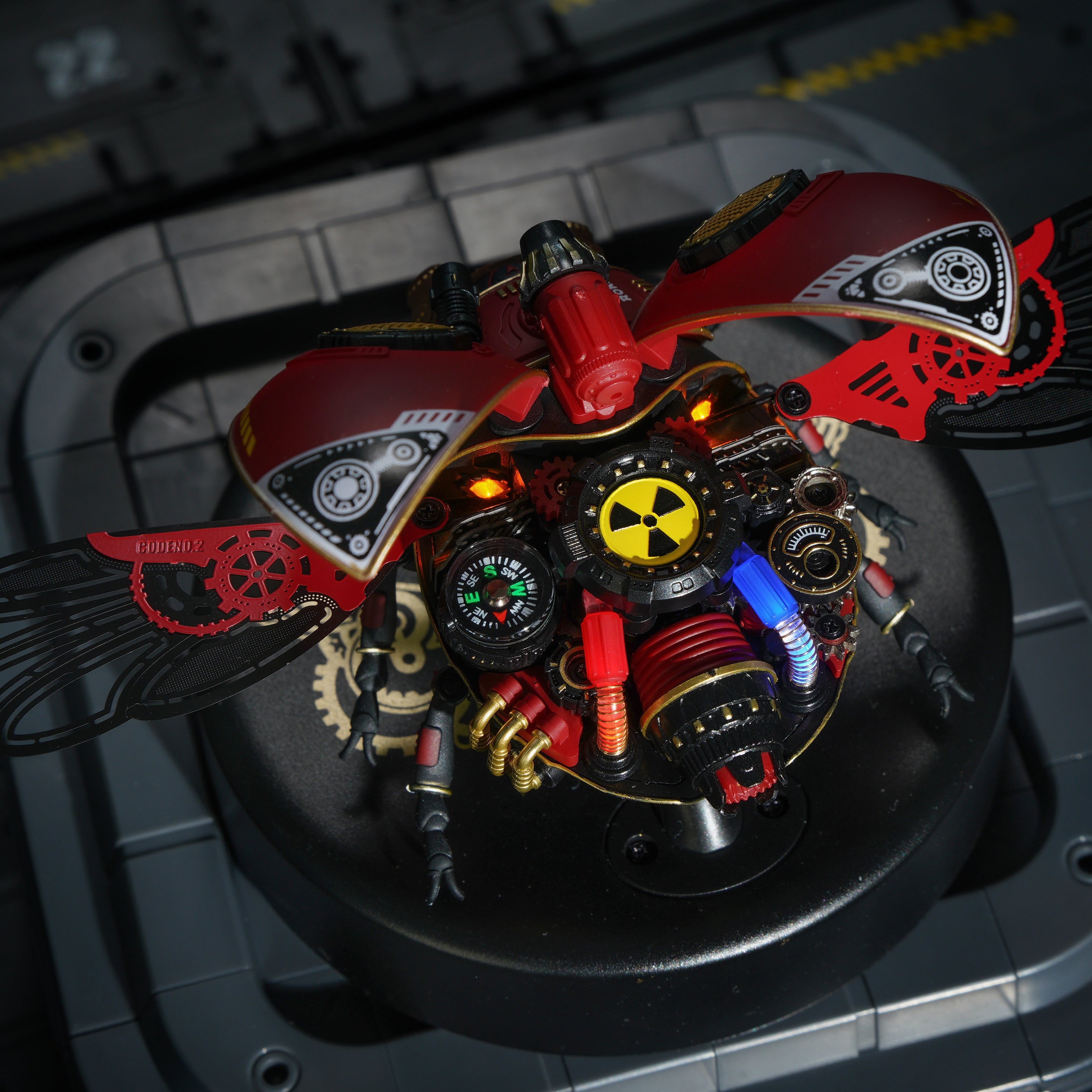 مجسم ميكانيكي قابل للتجميع يتميز بتفاصيل معدنية واقعية، أجنحة متحركة، وإضاءة مدمجة تمنحه مظهراً نابضاً بالحياة.