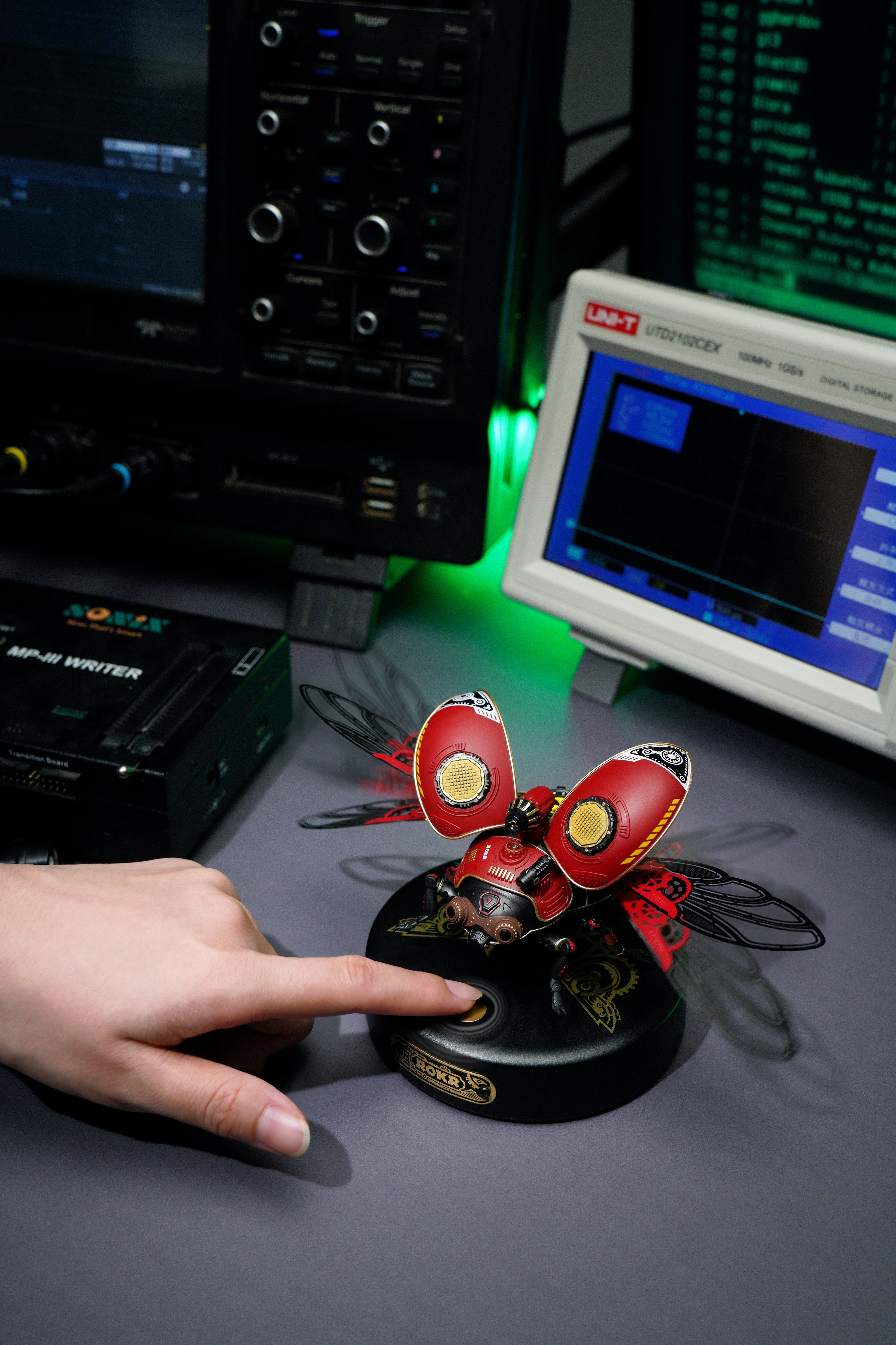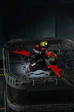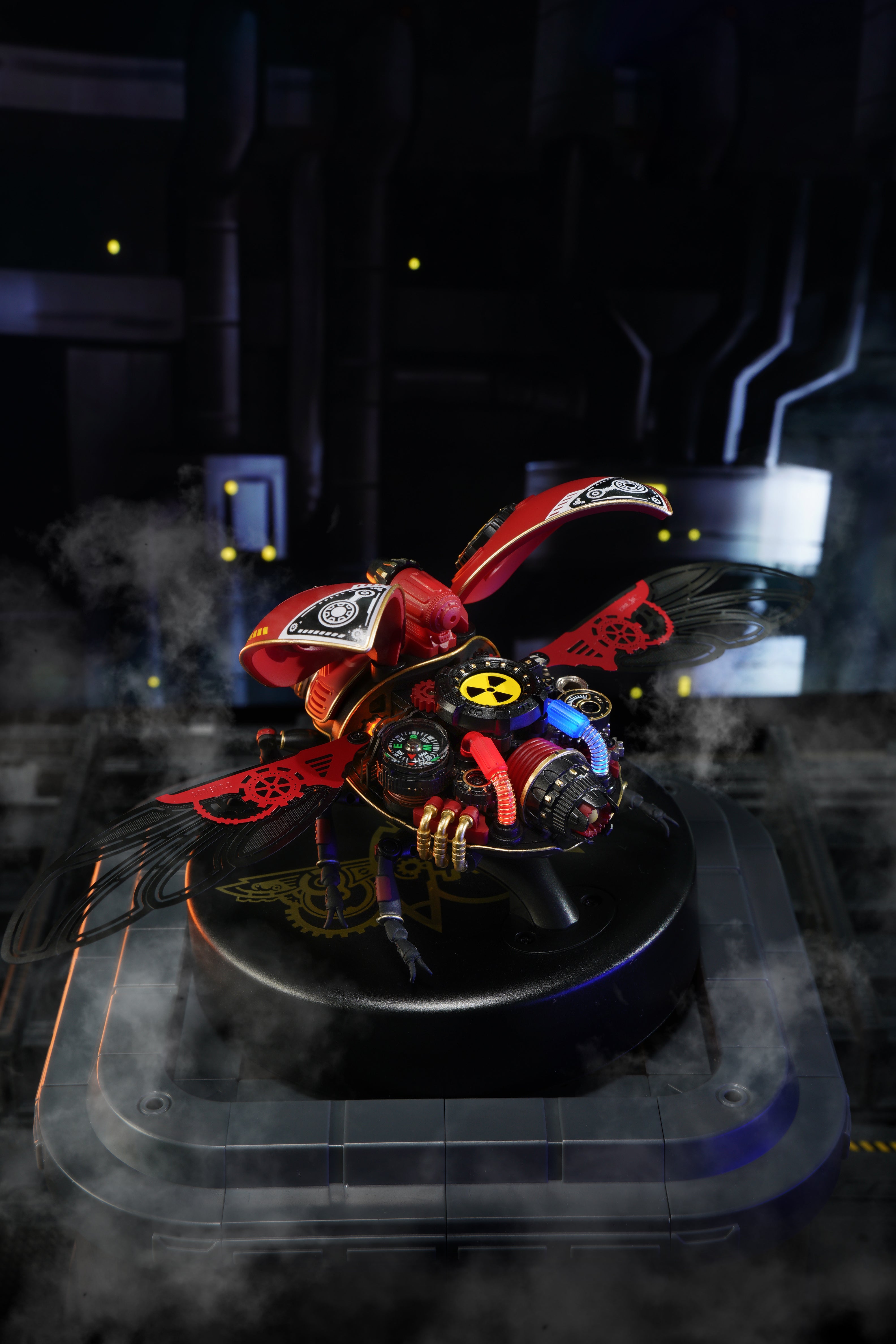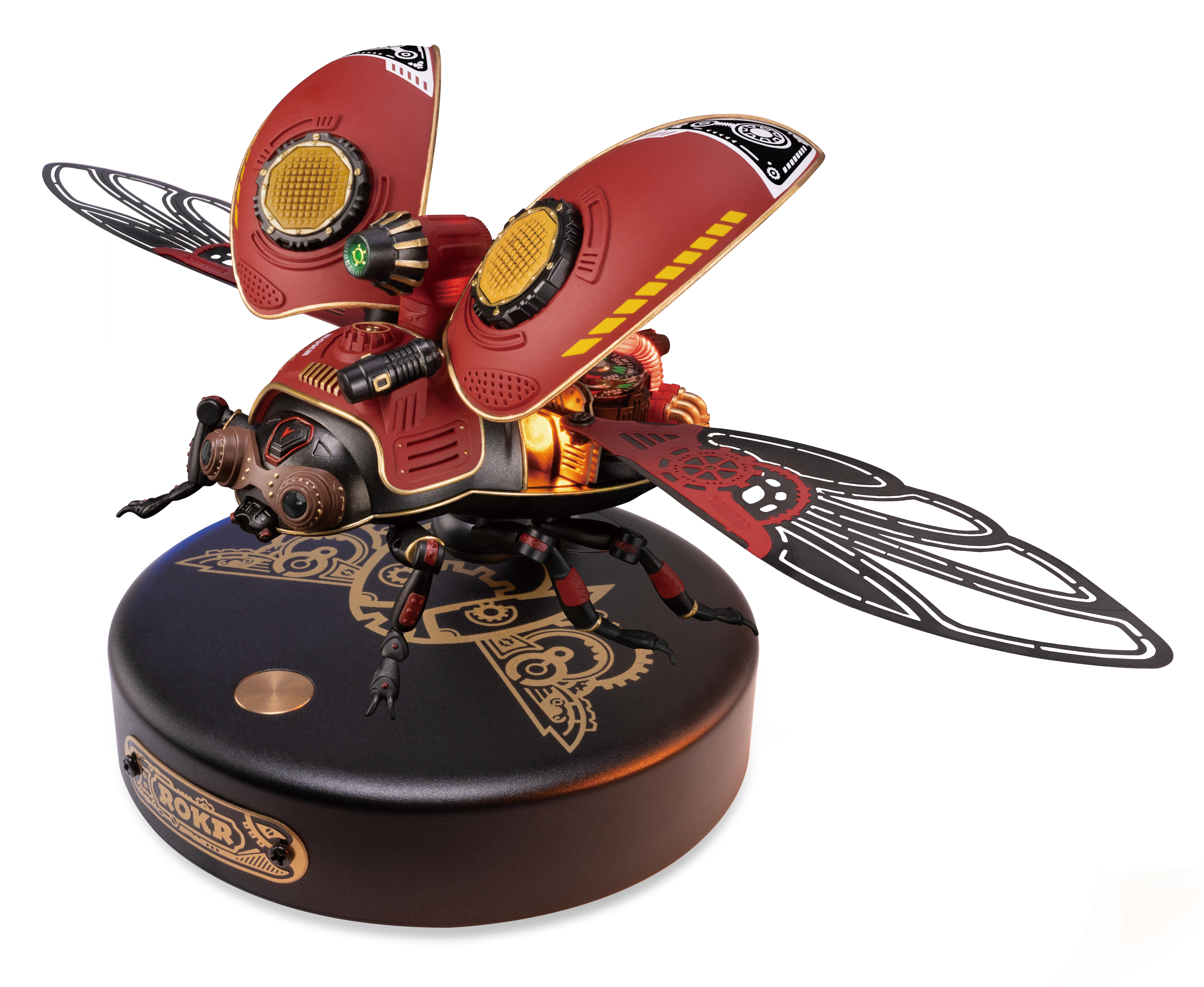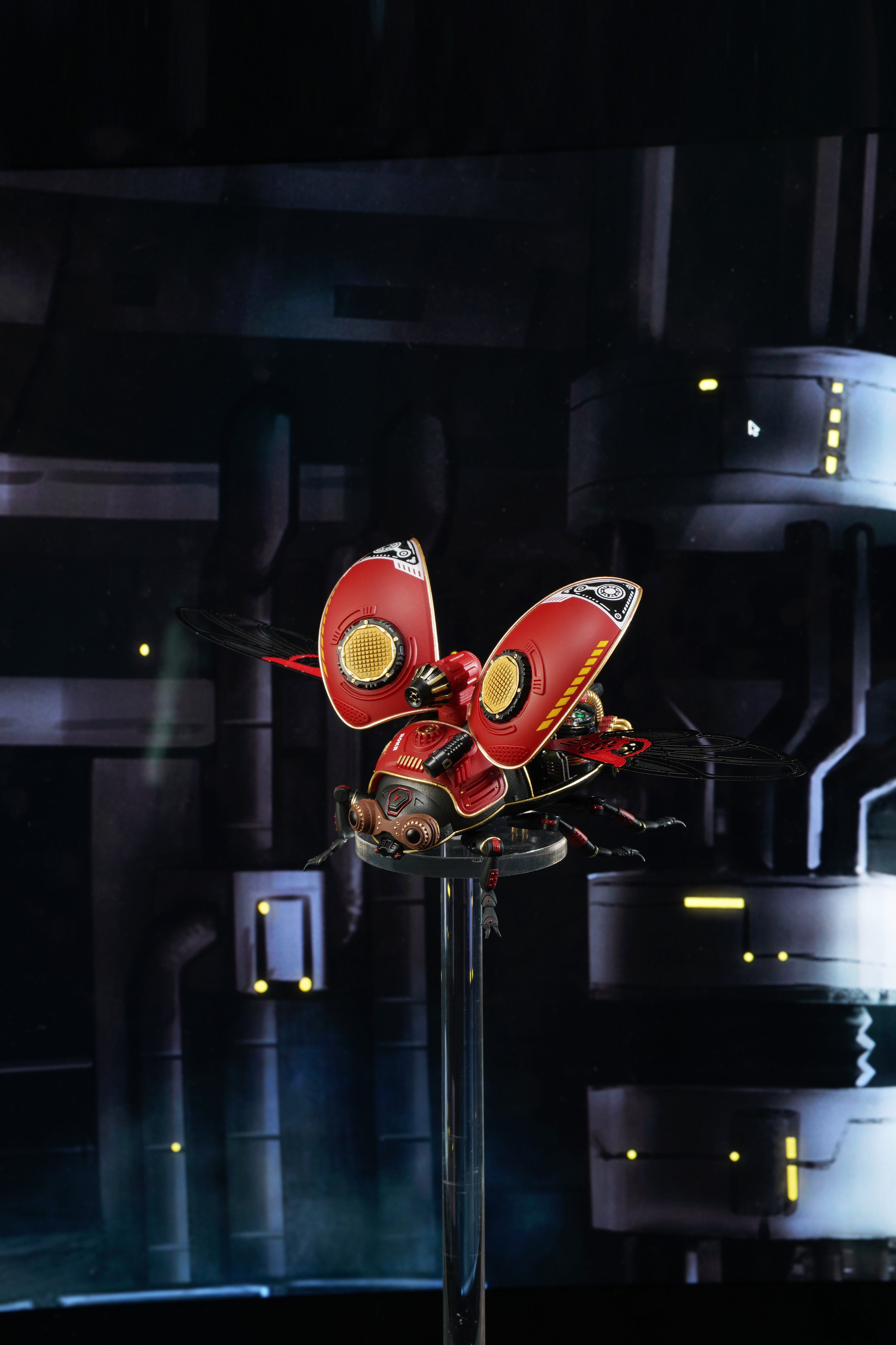 مجسم ميكانيكي قابل للتجميع يتميز بتفاصيل معدنية واقعية، أجنحة متحركة، وإضاءة مدمجة تمنحه مظهراً نابضاً بالحياة.