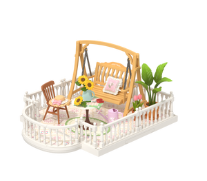 ✔ تفاصيل دقيقة تشمل أرجوحة، طاولة، كراسي ونباتات