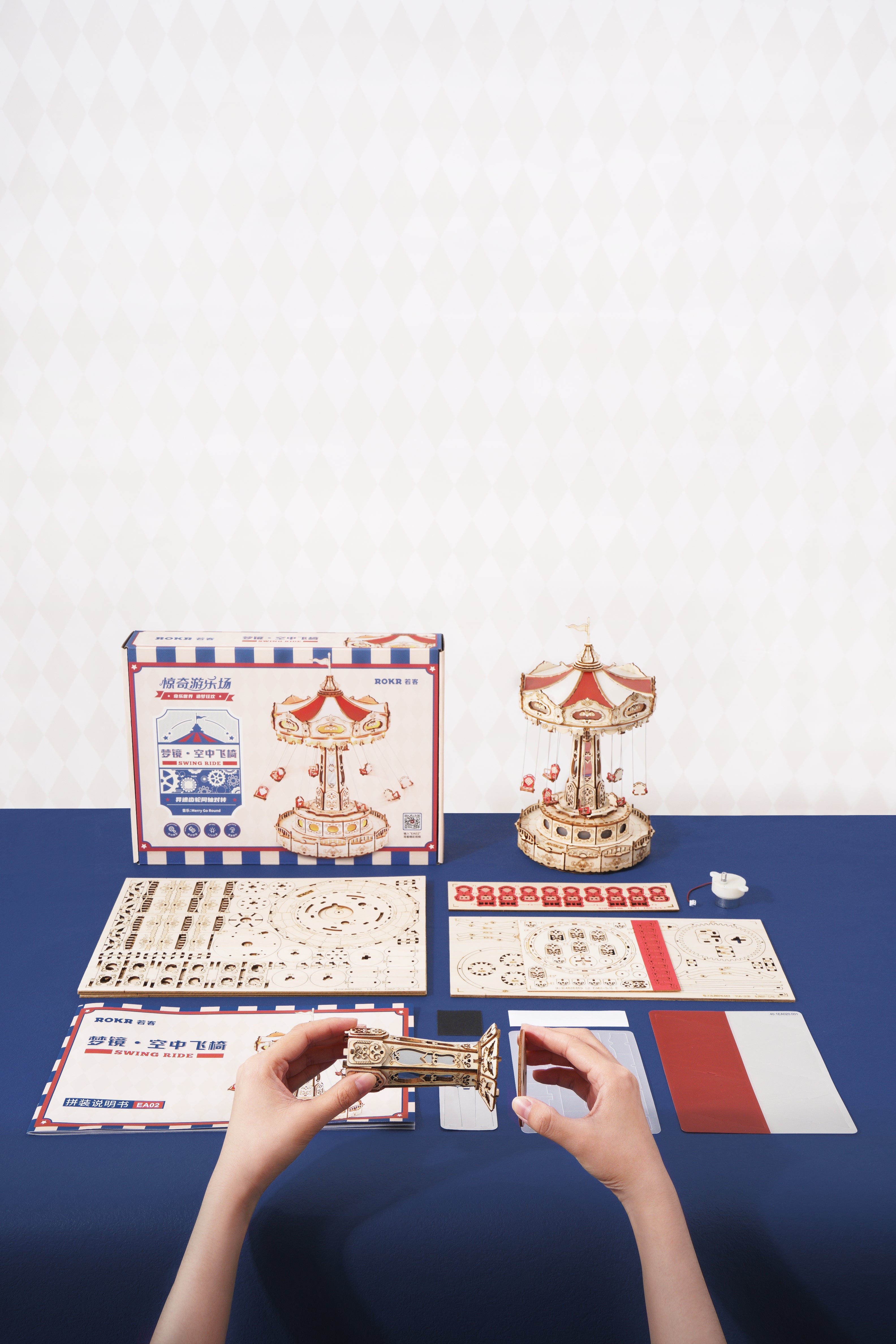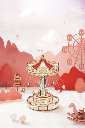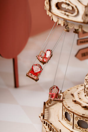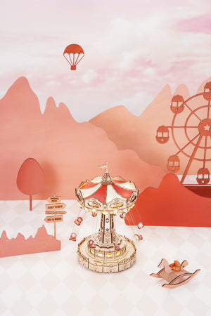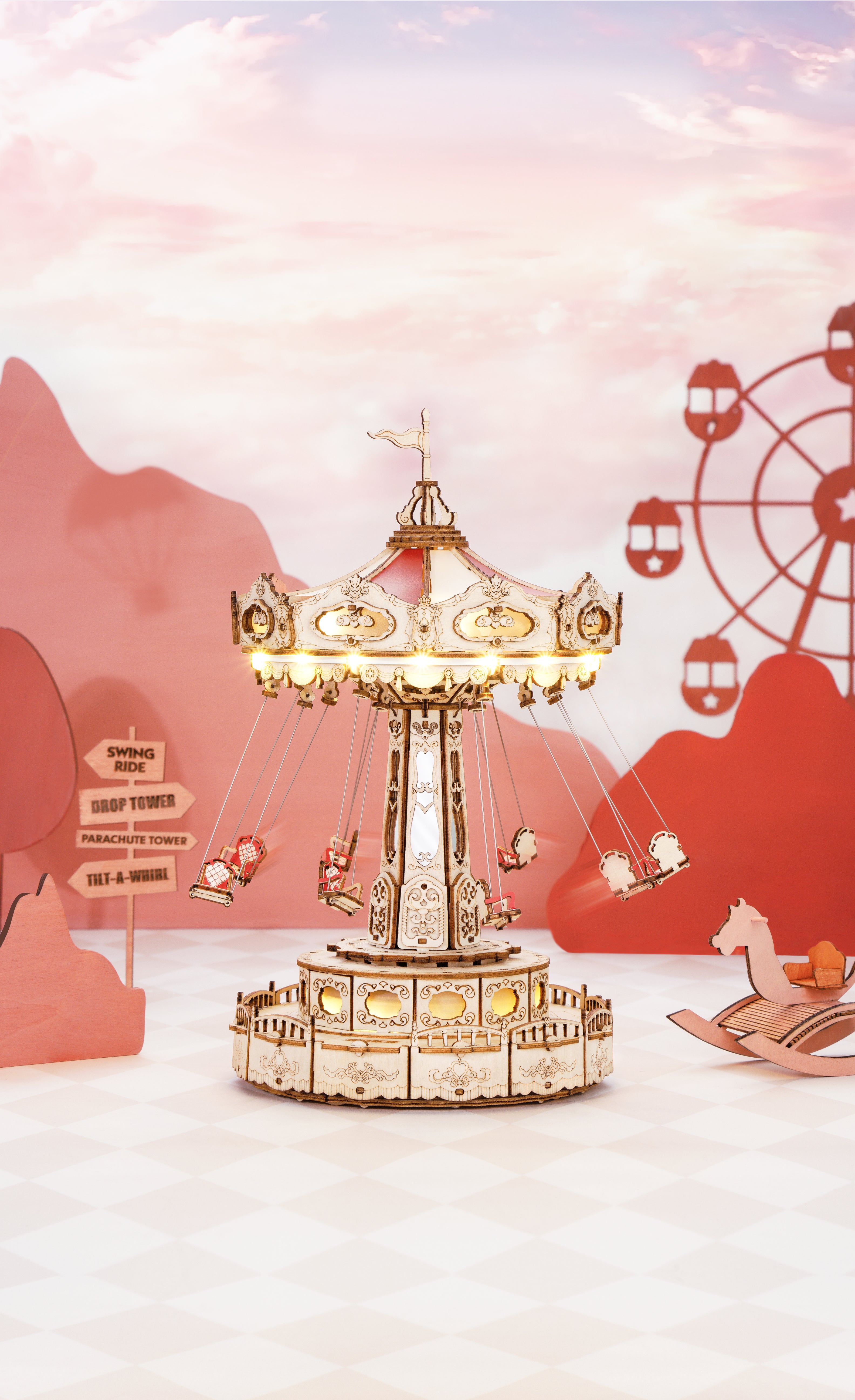 نموذج ديكور خشبي ثلاثي الأبعاد مستوحى من أجواء مدن الملاهي الكلاسيكية، يتميز بعجلة فيريس دوّارة مع إضاءة LED وموسيقى هادئة تمنح تجربة بصرية ممتعة.