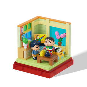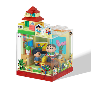 مجسم مكعبات مستوحى من منزل شين تشان الشهير من مسلسل Crayon Shin-chan، بتصميم لطيف ومليء بالتفاصيل الداخلية التي تعكس أجواء العائلة والشخصيات المحبوبة.